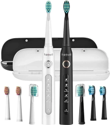 Elke dag een stralende glimlach met het duo-pack ADA-goedgekeurde FAIRYWILL sonische tandenborstels. Tot 40.000 trillingen/min, 5 standen, een slimme 2-minuten timer met intervallen van 30 s en IPX7-waterdichtheid. Dankzij een batterijduur tot 30 dagen per lading, een set van 8 opzetborstels en 2 reisetuis is dit de ideale keuze voor stellen en gezinnen.