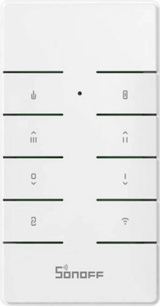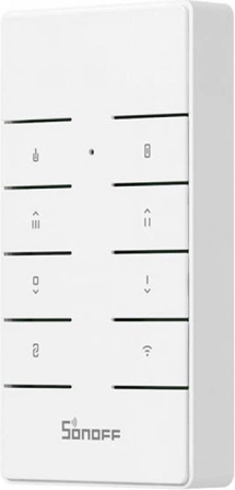 De SONOFF RM433R2 is een elegante RF‑afstandsbediening met 8 knoppen die het bedienen van verlichting, ventilatoren en andere SONOFF‑apparaten vereenvoudigt. Hij biedt snelle toegang tot veelgebruikte functies zoals aan/uit, dimen of snelheidskeuze en werkt ook zonder Wi‑Fi‑verbinding.