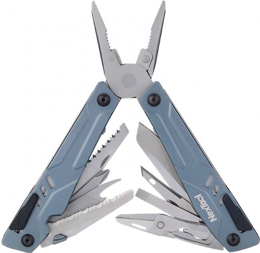 De Nextool multitool bevat 15 verschillende gereedschappen, waaronder naaldneustang, een houtzaag en een flesopener.