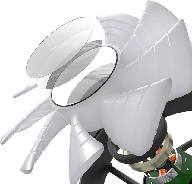 Negen geoptimaliseerde bladen en Rifle-lagers zorgen voor een hoge luchtstroom van 62,18 CFM bij slechts 18–30 dBA. Rubberen dempers verminderen trillingen effectief voor een geraffineerde werking.