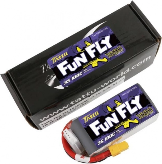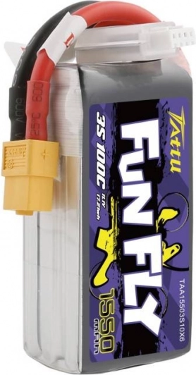 Tattu Fun Fly is een betrouwbare accu bedoeld voor op afstand bestuurde drones. Hij heeft een capaciteit van 1550mAh en levert stabiele prestaties met een stroombelasting van 100C, wat zorgt voor een soepele en langdurige vluchtstabilisatie. Deze accu is eenvoudig te integreren dankzij de universele XT60-connector.