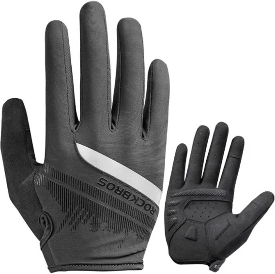 ROCKBROS fietshandschoenen M – antislip, schokdemping, ademend, polsondersteuning, reflecterende elementen en touchscreenbediening. Zwart, comfortabel en duurzaam.