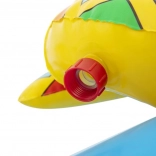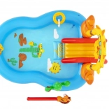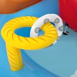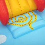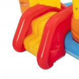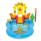 Het speelcentrum combineert waterpret met beweging en spelletjes: kinderen glijden van de afneembare glijbaan, proberen ringen gooien op de hoefijzerpaal en rijden op het opblaasbare paardje. Na het spelen laat je het water eenvoudig weglopen en ruim je het badje zo op. Verpakt inclusief reparatiepatch voor een langere levensduur.