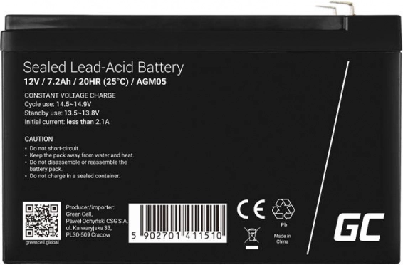 Oplaadbare AGM-accu 12 V 7,2 Ah voor UPS en alarmsystemen GREEN CELL