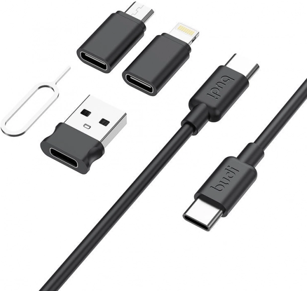 De multifunctionele draadloze oplader Budi 12-in-1 combineert snel 15W draadloos opladen met een praktische organizer voor kaarten en adapters. Je tovert de oplader eenvoudig om tot een telefoonstandaard, binnenin vind je een USB‑C‑kabel, een set adapters (USB‑C/Lightning/Micro USB/USB‑A), sleuven voor SIM en microSD (TF) en een handig spiegeltje voor onderweg.