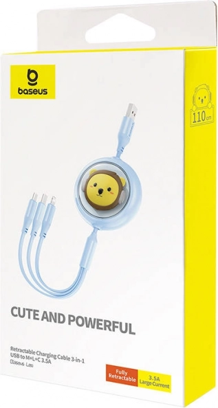 Uittrekbare 3-in-1 oplaadkabel BASEUS USB naar USB‑C, micro USB en Lightning 3,5 A, 1,1 m – blauw