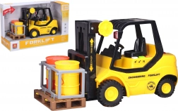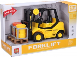 De geel-zwarte heftruck is een perfecte aanvulling op elke kinderspeelgoedcollectie. Dit model is bedoeld voor behendige bestuurders die zijn beweegbare voorzijde waarderen, ideaal voor het optillen van pallets.