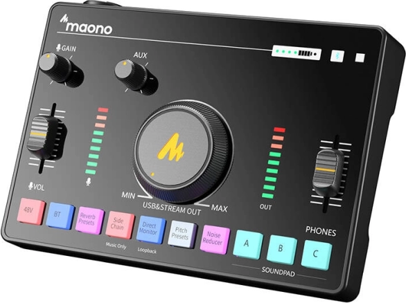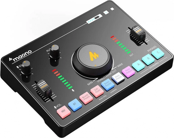 MAONO AMC2 Neo combineert een draagbaar mengpaneel en een USB-geluidskaart zodat je stem- en muziekopnamen professioneel klinken. Dankzij geavanceerde ruisonderdrukking tot 60 dB krijg je een zuiver signaal van zowel dynamische als condensatormicrofoons, terwijl 48V fantoomvoeding studiomicrofoons betrouwbaar van stroom voorziet.