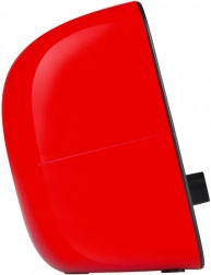 Praktische volumeregeling via de ingebouwde draaiknop en de universele 3,5 mm AUX-ingang voor telefoon, tablet of MP3-speler zorgen elke dag voor comfortabel gebruik. De stijlvolle rood-zwarte behuizing met compacte afmetingen past op elk bureau.