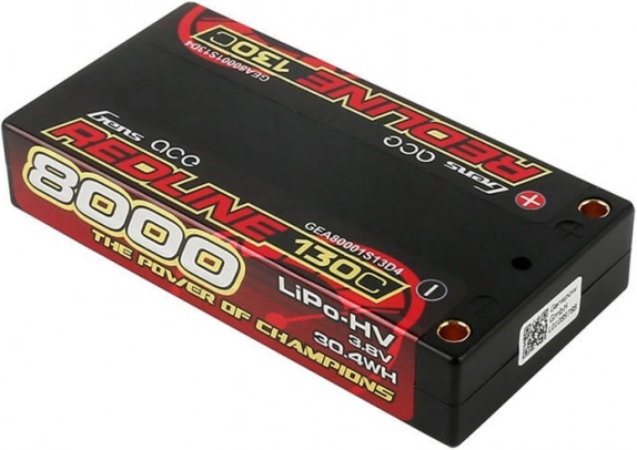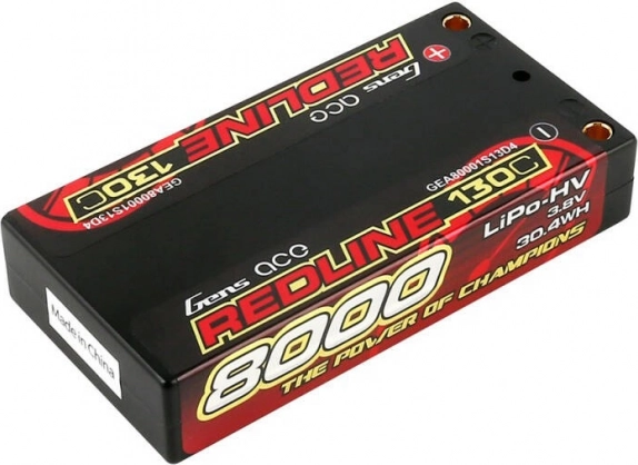 De Gens Ace Redline lipo-accu is ontworpen voor hoog vermogen en betrouwbaarheid, om te voldoen aan de verwachtingen van zelfs de meest veeleisende gebruikers. Met een capaciteit van 8000mAh en een spanning van 3,8V bereikt hij een ontlaadsnelheid van 130C.