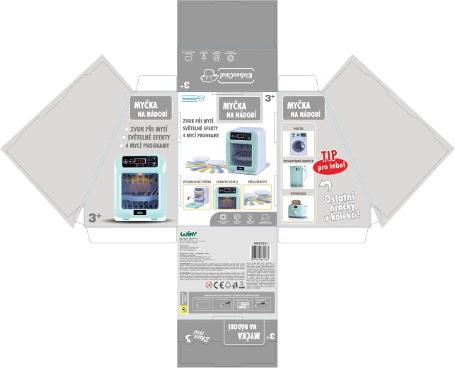 Kies uit 4 wasprogramma’s of stel zelf de tijd in naar behoefte. De afwasmachine is direct klaar voor gebruik – 2× AAA-batterijen zijn inbegrepen. Het perfecte cadeau dat vermaakt en helpt orde in het keukentje te houden.