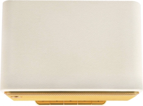 Elegante goudkleurige grille, compact chassis en hoogwaardige afwerking van MDF. Het voorste bedieningspaneel biedt snelle toegang tot functies en de rubberen voetjes zorgen voor stabiliteit op meubels.