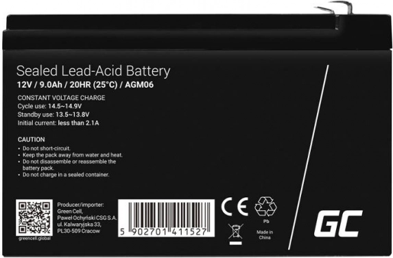 De betrouwbare onderhoudsvrije AGM-accu 12 V 9 Ah van GREEN CELL levert stabiele prestaties voor UPS, alarmsystemen, noodverlichting en speelgoed. Dankzij de VRLA AGM-technologie is hij in elke positie veilig te gebruiken, biedt hij een lange levensduur van 5+ jaar, een laag zelfontladingspercentage en hoge betrouwbaarheid bij zowel cyclisch als standby-gebruik.