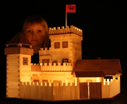 Houten latjes van 9×9 mm en papieren accessoires (ramen, deuren, daken) zorgen voor een natuurgetrouwe uitstraling van middeleeuwse architectuur.