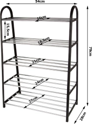 Met vijf niveaus voor het opbergen van schoenen is dit rek ruim genoeg om tot 10 paar schoenen te bevatten. Elk niveau is zo ontworpen dat zowel sport- als nette schoenen er comfortabel in passen.