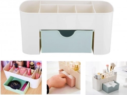 Ontdek de magie van orde met deze tweedelige organizer, die perfect uw cosmetica en sieraden op hun plek houdt. Het bovenste gedeelte bevat 6 verschillende vakken, ideaal voor lippenstift, nagellak of lipgloss, terwijl het onderste gedeelte voorzien is van een lade voor het opbergen van sieraden of cosmetische producten.