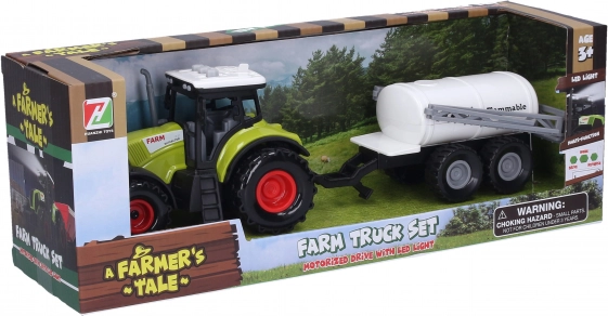 Ontdek een geweldige landbouwmachine voor kleine boerderijliefhebbers. De tractor met sproei-aanhanger helpt het veld te “behandelen” en klaar te maken voor het seizoen. Dankzij de licht- en geluidseffecten oogt hij realistisch en prikkelt hij de fantasie tijdens het spelen.