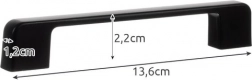 Productspecificaties omvatten een zwarte matte kleur, aluminium materiaal en twee montagegaten met een onderlinge afstand van 96 mm. De afmetingen zijn 10,4 x 2,2 x 1,2 cm, wat zorgt voor een stevige en stabiele constructie voor een lange levensduur.