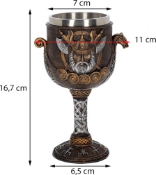 De beker is versierd met een motief van het Vikingschip Drakar en een reliëf van een Noordse krijger. Perfect als themacadeau, als decoratie voor kantoor of woonkamer en als stijlvolle kelk voor het af en toe serveren van koude dranken.