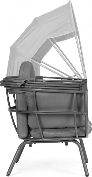 De stabiele en stevige stalen constructie zorgt voor veiligheid en comfort. De grote inklapbare luifel biedt aangename schaduw op warme dagen en beschermt tegen windvlagen. Lezen, zonnebaden of buiten relaxen wordt een geheel nieuwe ervaring.