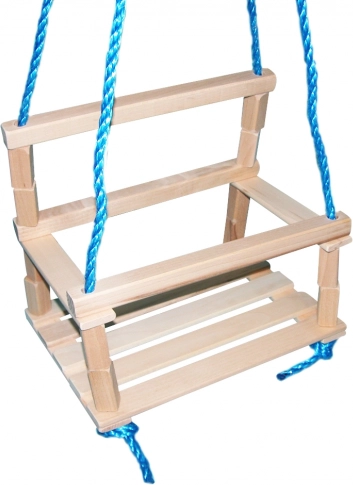 Houten kinderslinger voor binnen en tuin. Natuurlijk materiaal, eenvoudig design, universele ophanging. Afmetingen 35×27×24 cm. Veel plezier voor kinderen.