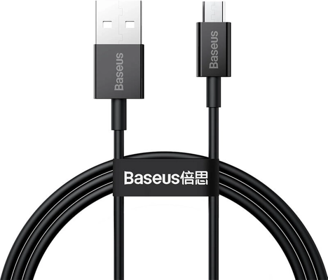 Baseus Superior USB–micro USB-kabel 1 m, 2 A. Snel opladen, gegevensoverdracht 480 Mb/s, robuuste ABS+TPE-constructie, brede compatibiliteit en klittenbandbinder.