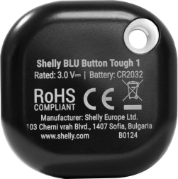 Compacte en robuuste Bluetooth-knop Shelly BLU Tough 1 voor snelle activatie van scènes en automatiseringen in je slimme woning. Biedt een waterdichte en schokbestendige behuizing, lange batterijduur tot 2 jaar, versleutelde communicatie en de mogelijkheid om verschillende acties toe te wijzen afhankelijk van het type druk.
