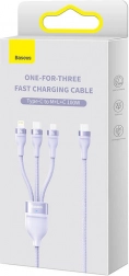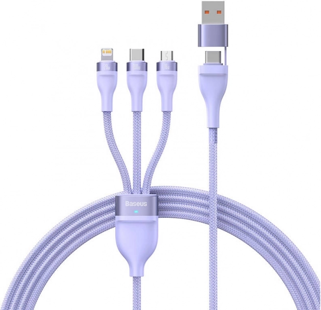 Ervaar gemak met de 3-in-1 oplaadkabel van Baseus, met Lightning, USB-C en Micro USB connectoren voor gelijktijdig opladen van drie apparaten. Flexibel gebruik dankzij dubbele inputpoorten USB en USB-C.