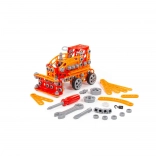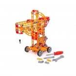De bouwset Kleine Ingenieur met 235 onderdelen van fabrikant Polesie is speciaal gemaakt voor kleine ingenieurs. De onderdelen zijn uitgevoerd als stevige strips met gaten. De strips worden met schroeven en moeren aan elkaar bevestigd. De set bevat een gedetailleerde handleiding waarmee je de op de verpakking afgebeelde modellen kunt bouwen. Het spelen met de bouwset is niet beperkt tot bouwen volgens de instructies. Kleine ingenieurs kunnen hun fantasie de vrije loop laten en iets nieuws creëren, en zo hun creatieve potentieel ontdekken. De verschillende typen bouwsets hebben verschillende thema’s, maar zijn volledig compatibel. Kinderen kunnen zo een hele collectie modellen samenstellen!