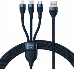 De Baseus-kabel biedt een unieke combinatie van drie connectoren: USB‑C, Micro USB en Lightning. Dat betekent dat u tot drie verschillende apparaten tegelijk kunt opladen met slechts één kabel! Met een vermogen tot 66W is deze kabel ideaal voor snel bijladen van uw apparaat en biedt hij brede compatibiliteit met verschillende merken, zoals Apple, Samsung en Xiaomi.