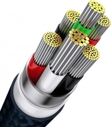 Dankzij de nylon mantel en de versterkte kabeluiteinden hoeft u niet bang te zijn voor mechanische schade. Een speciale lichtindicator informeert u over de oplaadmodus en de veiligheid wordt gewaarborgd door Power Split‑technologie, die energie gelijkmatig verdeelt en apparaten beschermt tegen oververhitting.
