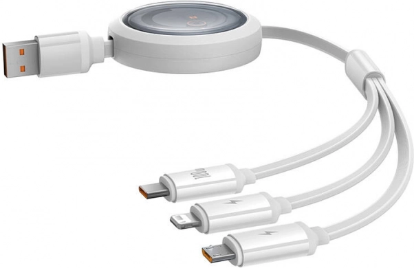 Uittrekbare 3-in-1 oplaadkabel BASEUS Free2Draw 100W, 1,1 m, wit