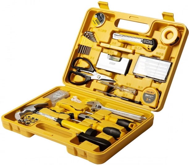 De Deli gereedschapsset is ideaal voor dagelijks huishoudelijk onderhoud en kleine reparaties. Opgeborgen in een stevige koffer, bevat hij een breed scala aan gereedschap, waaronder schroevendraaiers, tangen, meetlinten en andere essentials voor doe-het-zelvers en huishoudens.