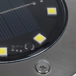 De set van zonne-LED lampen is modern, functioneel en ecologisch met acht LED's voor gelijkmatig verspreid licht.