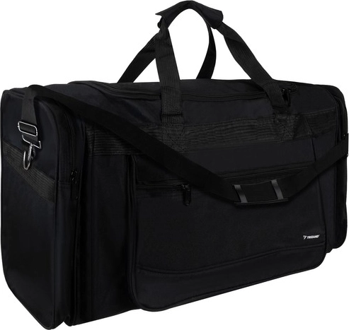 Organiseren is eenvoudig: het hoofdvak biedt plaats aan kleding en uitrusting, het voorvak met rits is ideaal voor kleinigheden en documenten, en de twee grote zijvakken geven snelle toegang tot schoenen of accessoires. De verstelbare schouderriem met kussentje ontziet je schouder, zelfs bij zwaardere bagage.