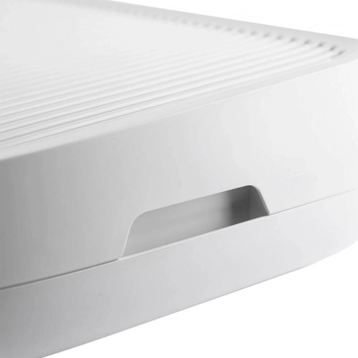 Het gladde plastic is gemakkelijk schoon te maken – giet het opgevangen grit eenvoudig weg en spoel af. Het minimalistische witte design past perfect in het interieur.