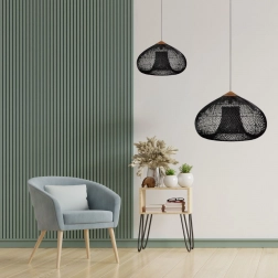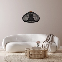 Deze zwarte rattan lamp combineert natuurlijke materialen met een modern design. De handgevlochten kap zorgt voor warm, knus licht en werkt uitstekend in de woonkamer, eetkamer en slaapkamer. Dankzij de universele look past hij gemakkelijk bij minimalistische, Scandinavische en boho stijlen.