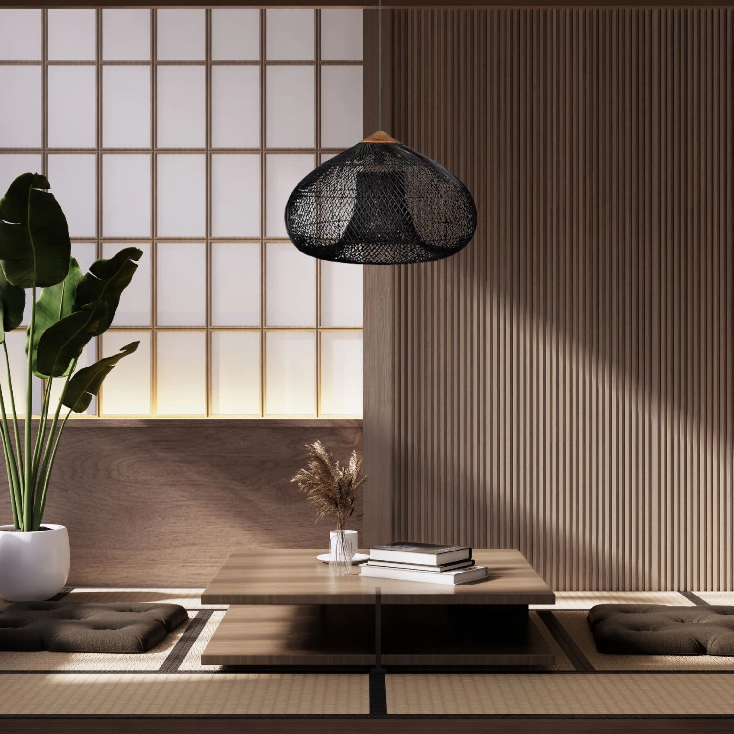 Het gevlochten rattan kapwerk verspreidt het licht zacht en creëert een knusse sfeer zonder verblinding – ideaal voor dagelijks comfort.