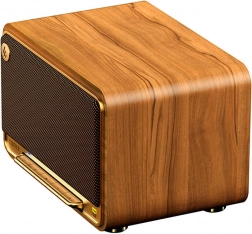 Elegant houten design met een retrotoets, 12 mm MDF-behuizing en verborgen handgreep voor comfortabel dragen. Tot 12 uur gebruik op één lading.