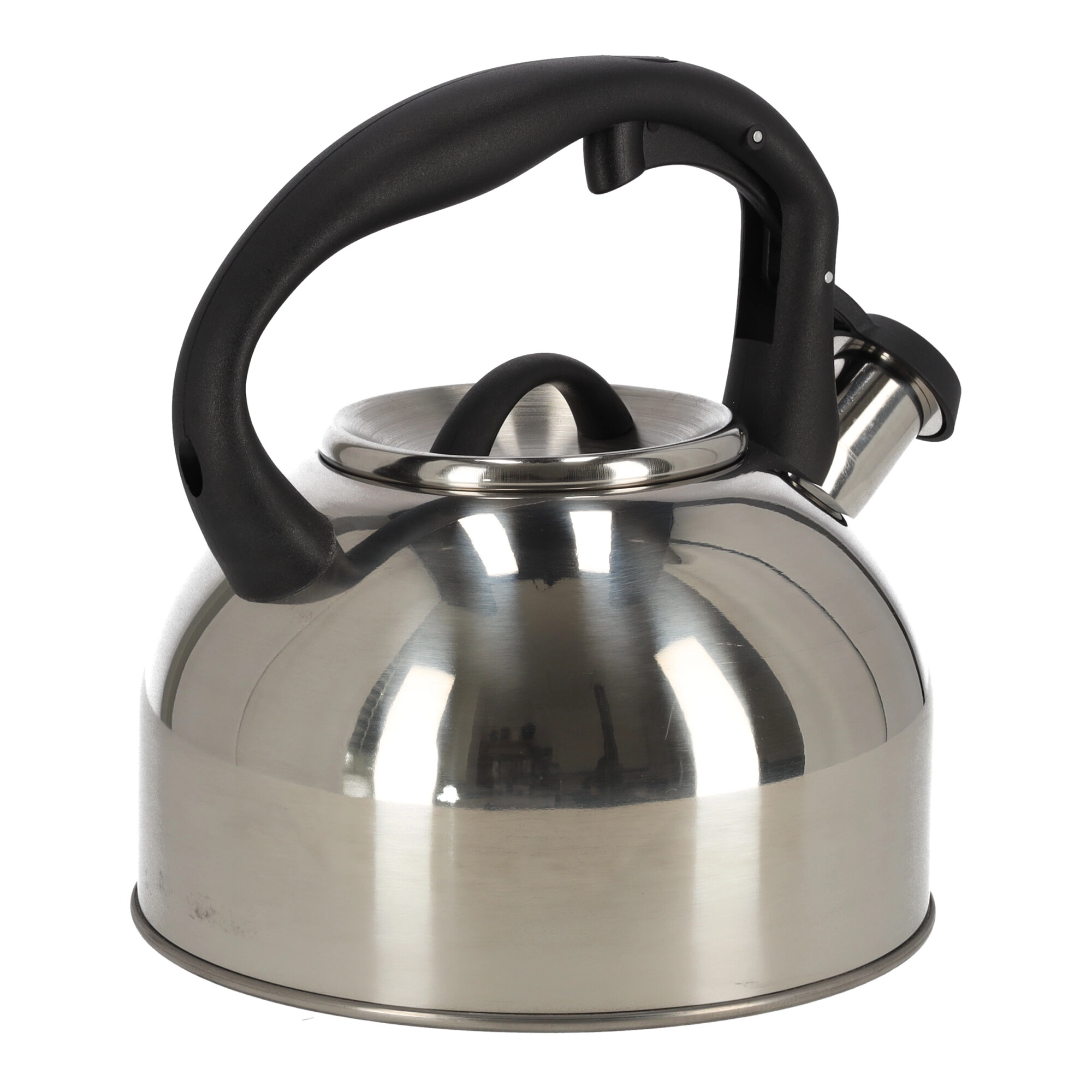 De ketel is uitgerust met een ergonomisch handvat dat zorgt voor comfortabel en veilig gebruik. Het mechanisme voor het optillen van de fluit maakt eenvoudig uitschenken mogelijk en de ingebouwde fluit geeft aan wanneer het water kookt.