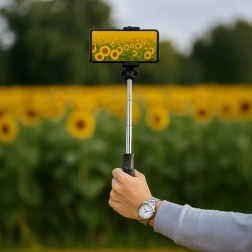 Geniet van vrijheid bij fotograferen en filmen. Deze selfiestick met statief 2-in-1 combineert een licht ontwerp, eenvoudig uitklappen en betrouwbare Bluetooth-bediening zonder apps te installeren. De telefoonhouder met 360° rotatie schakelt in een oogwenk van portret naar landschap, ideaal voor sociale media, reizen en familiemomenten.