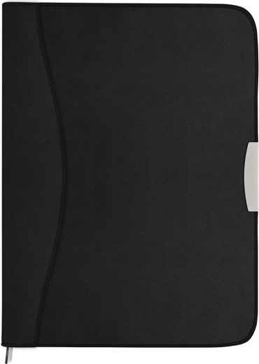Elegante en functionele diplomatenmap in matzwart. Afsluitbaar met rits, ideaal voor vergaderingen en zakelijke besprekingen. Bevat een A4-blok en praktische vakken voor al uw benodigdheden.