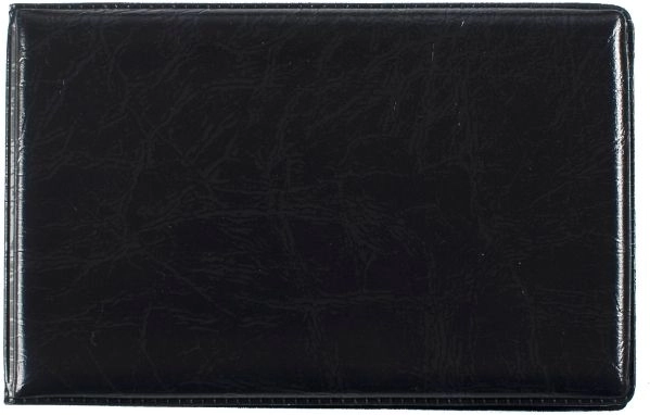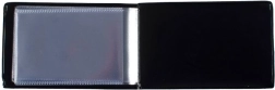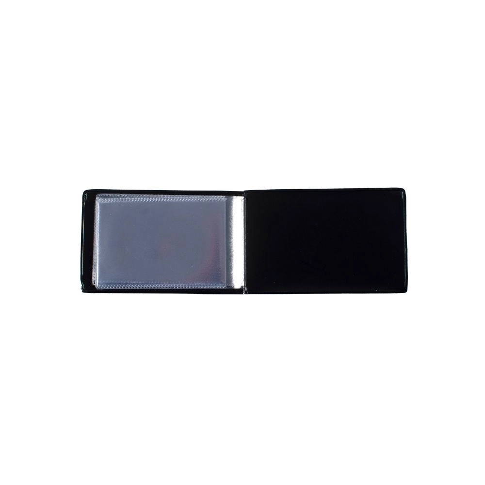 Praktische visitekaarthouder die tot 20 visitekaartjes kan bergen, gemaakt van duurzaam zwart kunststof.