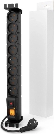 Speciale versie van de Acar S8 Rack stroomrail voor bescherming van acht apparaten in een 19" kast.