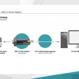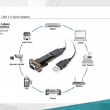 De adapter verbindt apparaten met een 9-pins seriële poort met moderne USB-computers.