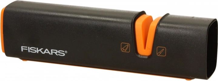 Houd je keukenmessen in topconditie met de universele FISKARS messenslijper. Het apparaat is ontworpen voor eenvoudig en veilig gebruik, zonder stroomvoorziening. De keramische stenen geven de snede een gladde afwerking en langdurige scherpte, terwijl het geïntegreerde mechanisme bij elke haal de juiste slijphoek waarborgt.
