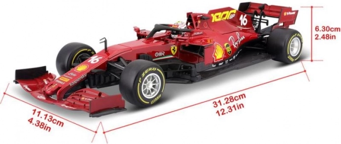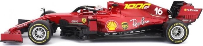 De originele kleurstelling, startnummer 16 en nauwkeurige sponsorlago7s leggen de racebolide van Charles Leclerc vast zoals je die van de baan kent.