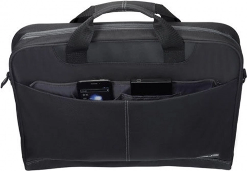 Dankzij de slimme interne indeling berg je eenvoudig een oplader, muis, telefoon of powerbank op, terwijl de stevige handgrepen en de afneembare schouderriem zorgen voor comfortabel dragen. De praktische band aan de achterkant maakt bevestiging aan het handvat van je koffer mogelijk, zodat je onderweg optimaal mobiel bent.