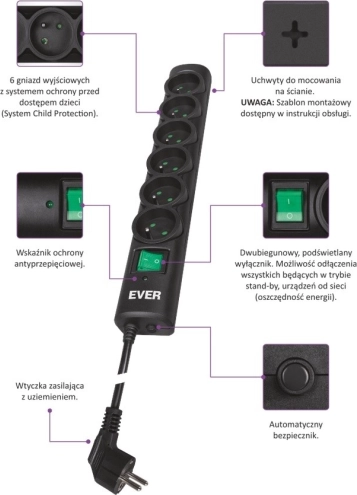 Met de overspanningsbeveiliging Ever Optima zorgt u voor de veiligheid van uw huishoudelijke apparaten, zoals desktop- en laptopcomputers, randapparatuur en audiovisuele apparatuur.