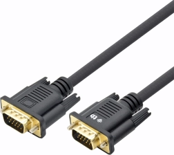 Kwalitatieve VGA-kabel voor het aansluiten van een monitor, projector of andere apparaten op de computer. Gemaakt van flexibele materialen voor optimale bescherming en ter voorkoming van breuken bij buigen, met vergulde connectors voor de beste signaaloverdracht.